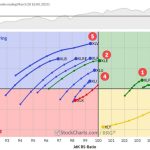 The relative strength index (RSI) in the lower panel is above 50. The last couple of times TLT crossed above its 200-day SMA, RSI failed to cross above 70, indicating a lack of momentum. However, if TLT crosses above its 200-day SMA and coincides with an RSI cross above 70, that could be an alert for a gain in momentum.